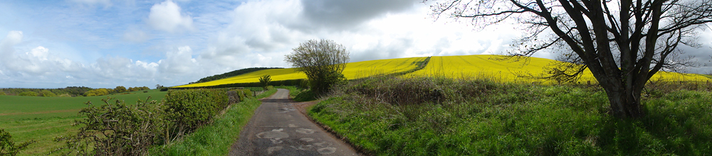 Terwijl ik zit te wachten op kokend water om bij mijn bad te gooien (jawel: ik wilde in een lekker warm bad maar vreemd genoeg komt er ineens nauwelijks warm water uit de kraan) post ik een foto van de omgeving. Het is werkelijk prachtig met alle koolzaadvelden die bloeien in een mooie gele kleur. Het landschap is heel afwisselend en glooiend.