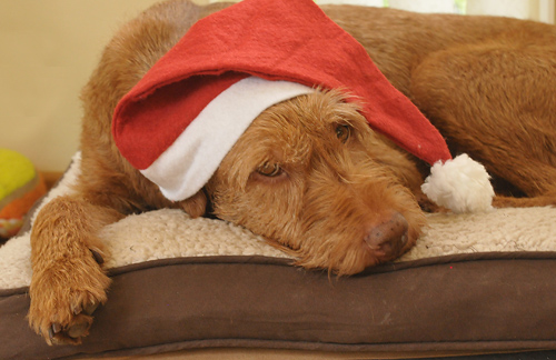 Zief is al helemaal klaar voor kerstmis. Ze doet het prima, haar oortjes zien er prachtig uit en ze voelt duidelijk niets meer. Ik druppel nu de laatste paar keren en dan masseer ik haar oren vrij krachtig en dat voelt duidelijk alleen maar ‘lekker’ en is niet meer pijnlijk. Goed nieuws dus.