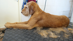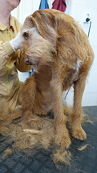 Bovenstaande foto is voor de trimbeurt. Lekker wild en wollig.