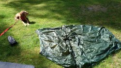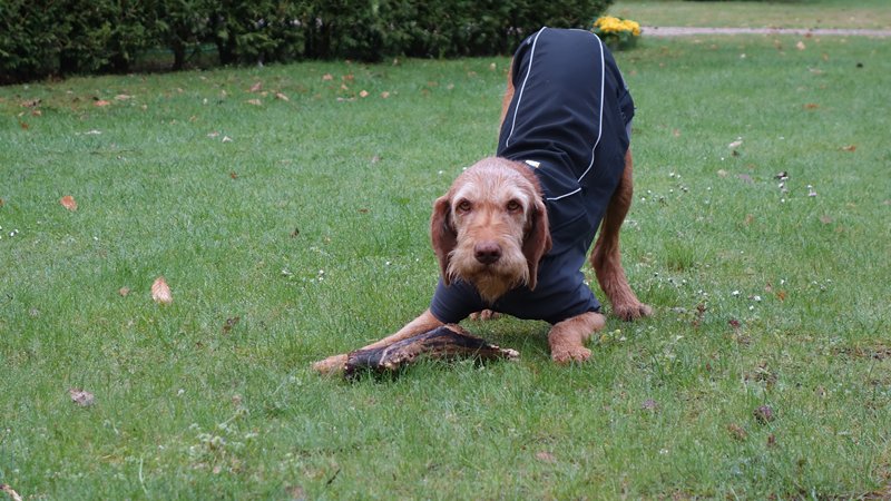 Ik vind het altijd weer een leuk proces om te volgen en de rust waarmee woef op de tafel zit en zich laat plukken is heel bijzonder. Ze ligt, zit of hangt een beetje en het doet haar niks. Als de telefoon gaat, blijft ze ook gewoon rustig liggen wachten.