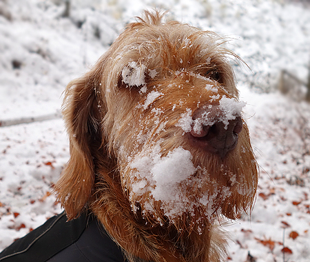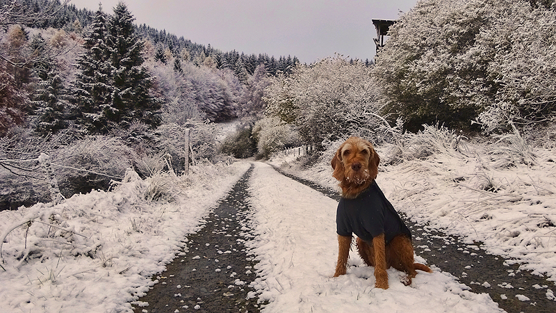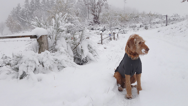 Medio december besloten we na een nieuwe punctie waaruit een exudatieve ontsteking bleek toch te vertrekken naar Schotland. dat was een goede keuze. We konden immers overleggen met de dierenarts en daar ook afwachten wat er zou gaan gebeuren. Ik was weliswaar bekaf maar het was ook fijn om weg te zijn. De zwelling bleef vrij fors maar ik rommelde braaf door met mijn aardappelcompresje en de huid bleef dicht. Nog eenmaal kreeg ze twee wonden op de zwelling in februari en dat was een teleurstelling. Maar met goed verbinden zodat alles droog en schoon bleef, konden we toch heerlijk op pad samen.