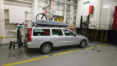Inmiddels zitten we op de boot. Wafje heeft de hele achterbak. Alles is eruit voor madam en ligt op de voorstoelen. Straks tweemaal uitlaten op het cardeck en dan kunnen we slapen.