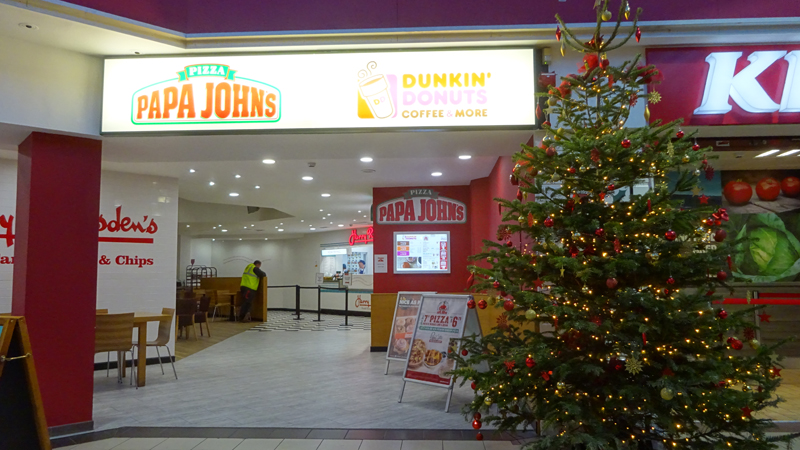 In de Boundary Mill verliezen we weinig tijd met wat shoppen en om 13.15 gaan we op weg naar het Noorden. Onderweg hebben we eerst bij de afslag net na Gretna (afslag 22) wat gegeten en gedronken en wafje uitgelaten. Dat kostte ons totaal een uur aan rusttijd maar dat was wel prettig. Ik at voor het eerst in eeuwen een kleine pizza met kip die ik nog lekker vond ook. Het werd daar ter plekke klaargemaakt dus wel even wachttijd. S. nam een hamburger maar dat leek mij nou weer net niks. Met een volle buik reden we dus weer verder.