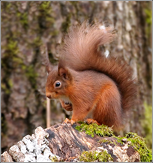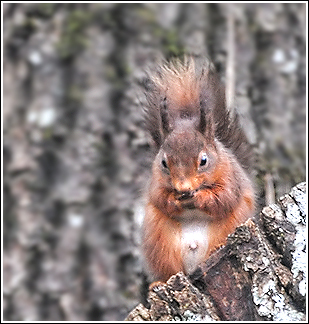 Gisteren postte ik al een wazig kiekje van de eekhoorn die hier komt smikkelen. Vandaag probeerde ik het weer toen we hem zagen scharrelen. Gelukkig wilde hij wel even poseren op een stronkje. Rennen door de bomen is ook leuk maar is weer net wat lastiger vastleggen….
