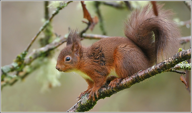 Ik ga gewoon door met het proberen de beste foto van de eekhoorn te krijgen. Inmiddels liggen er ook hazelnoten die de vogels helaas ook lekker blijken te vinden….. Vanmorgen zagen we ineens twee eekhoorntjes die elkaar blijkbaar niet leuk vonden. Niet gezellig samen aan de dis dus. Deze eekhoorn zat hoog in een boom maar het lijkt net alsof hij voor mijn neus zit….