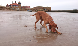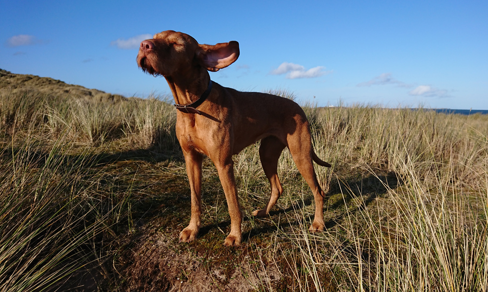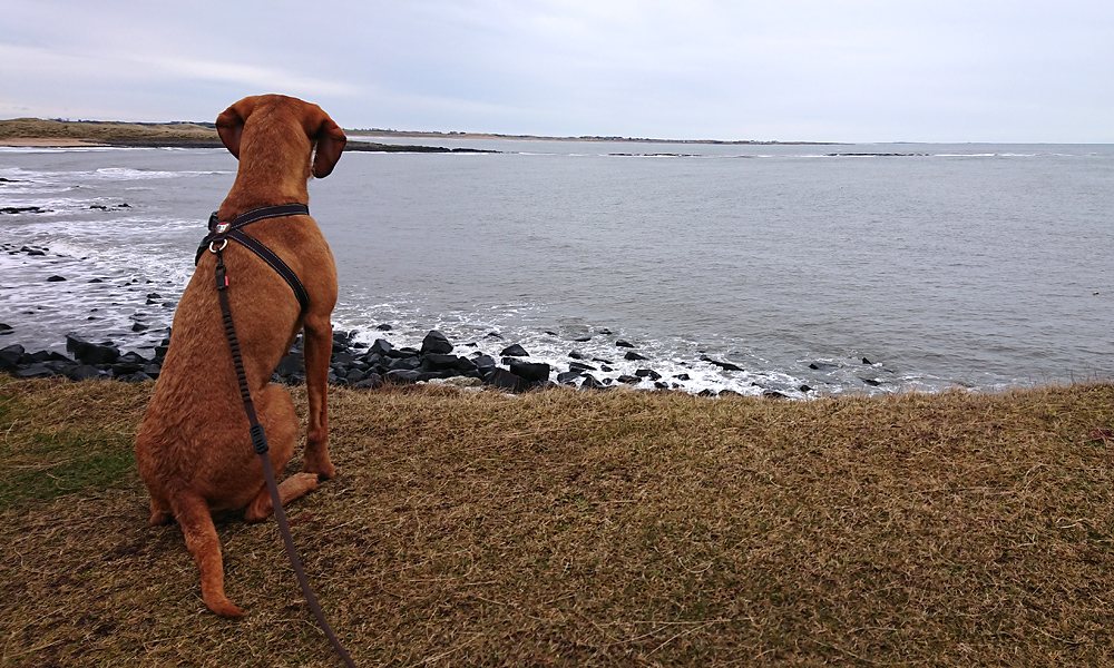 Vanmorgen ben ik voor het eerst met Fleur op pad gegaan. Dat was helemaal nieuw en ook best spannend. Hoe doet zij het nu en blijft ze bij me? Het was vrij bewolkt maar wel helemaal droog terwijl we op pad waren. Ze vond alles geweldig en was erg braaf. Alleen op de klif heb ik haar aangelijnd want zij is wel een hondje dat ineens naar beneden zou kunnen kukelen omdat ze toch even wil kijken of net een vogeltje ziet vliegen ofzoiets. Dat leert ze wel maar voor nu even aan de riem. Ik heb Ziva ook vaak genoeg aan de riem gedaan op enge stukken. Uiteindelijk was ze zo’n pro dat ze mij de weg wees en vertelde waar we wel en niet konden lopen maar dat komt met Fleur vast ook nog wel. Ik ben in ieder geval dik tevreden en het was echt leuk.