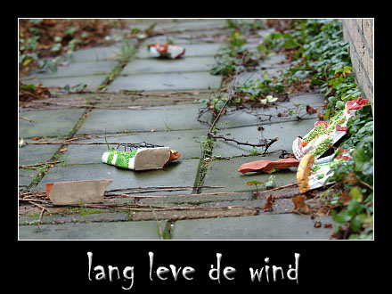 de wind brengt veel schade aan jammer genoeg.... veel dingen waaien om, huisjes vallen van de muur etc. maar tijdens mijn zoektocht naar alles wat stuk is....
