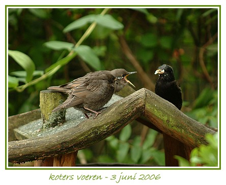 terwijl ik de fazant sta te fotograferen hoor ik een enorm lawaai, en nog net op tijd zie ik deze twee baby spreeuwen bedelen bij een van de ouders. wat een dotjes!
